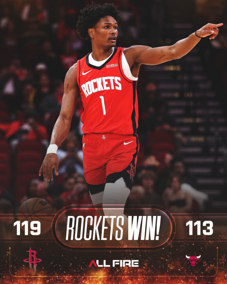 赛后,火箭官方发布赢球海报,阿门·汤普森成为封面人物。